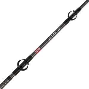 The PENN Ally II Boat Rod has the power and durability you need for offshore saltwater fishing. PENN uses a combination of Seaguide Stainless Steel guides with zirconium inserts and PacBay machined aluminum roller guides in key high-stress areas to extend the life of your line by reducing friction. The incredibly tough tubular E-glass rod blank with a solid glass tip withstands the strain of big. hard fighting fish. A non-corrosive aluminum Seaguide HBS reel seat keeps reels firmly secured during battle. Aluminum gimbals and PacBay aluminum butt sections provide considerable advantage in keeping the rod butt solidly planted during prolonged battles. Non-slip EVA grips withstand long days under the sun and saltwater spray while still providing a secure hold. The PENN Ally II Boat Rod provides the correct balance and application for your next offshore adventure.