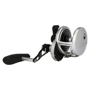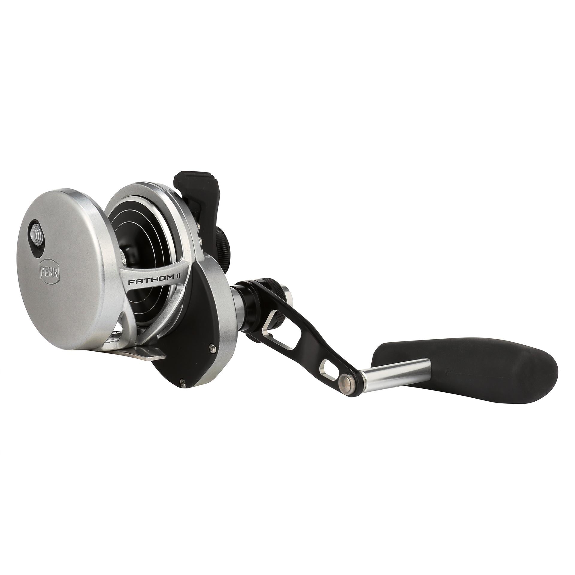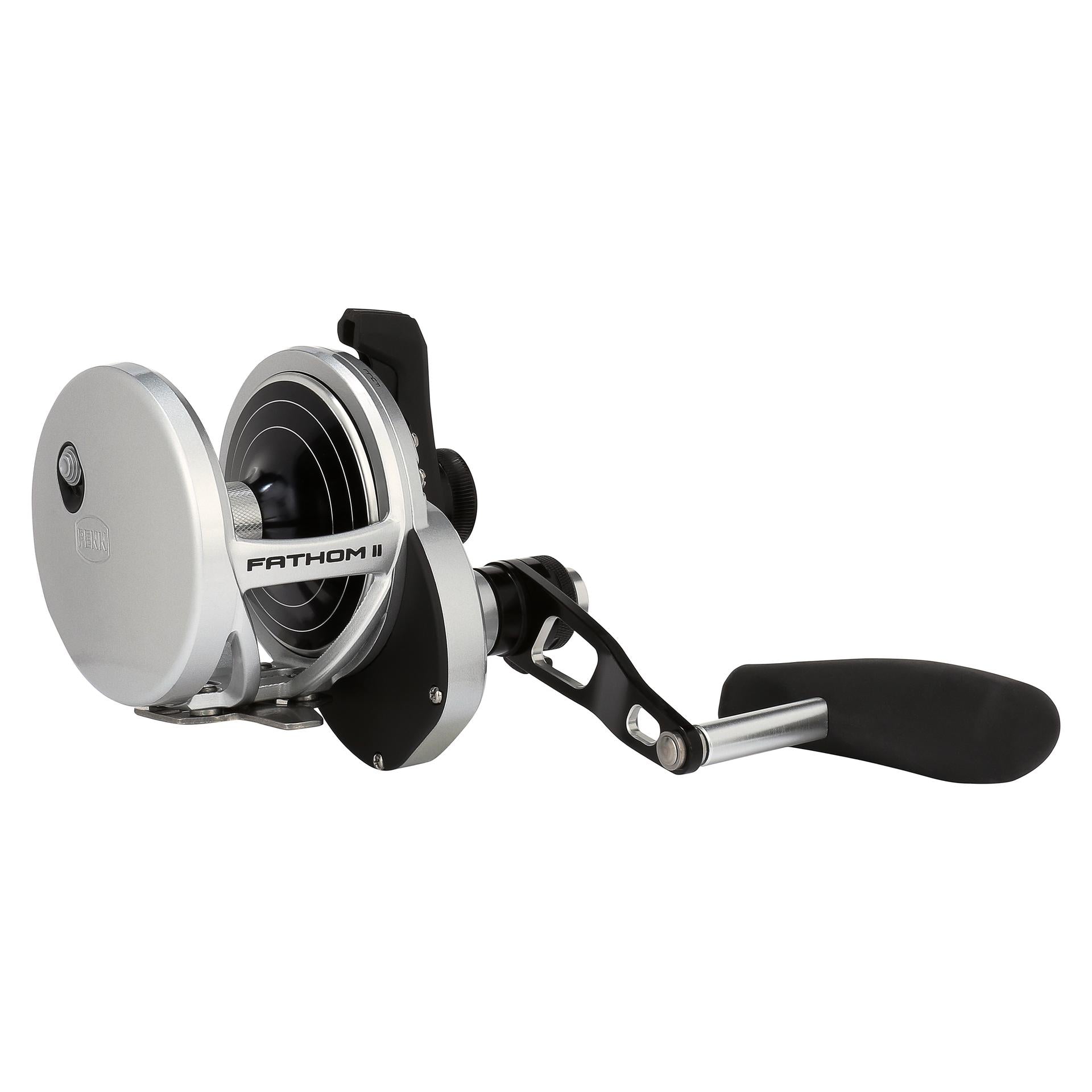 The all-new PENN Fathom II Lever Drag reels take a class-leading reel and raise the bar even more. New models. sizing. features. and optimized billfish models round out the assortment to give a model for every application. Integrating the palm side plate and frame allows the PENN Fathom II Lever Drag reels to be more compact in hand and increases strength. The Pull-to-Turn preset knobs allow the angler to truly set it. and forget it. At the PENN Fathom’s core is a stainless steel main and pinion gear and a forged and machined aluminum spool for maximum durability.