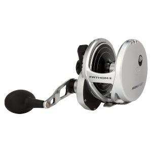 The all-new PENN Fathom II Lever Drag reels take a class-leading reel andraise the bar even more. New models. sizing. features. and optimized billfish models round out the assortment to give a model for every pplication. Integrating the palm side plate and frame allows the PENN Fathom II Lever Drag reels to be more compact in hand and increases strength. The Pull-to-Turn preset knobs allow the angler to truly set it. and forget it. At the PENN Fathom core is a stainless steel main and pinion gear and a forged and machined aluminum spool for maximum durability.