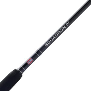 The Penn Squadron IV Boat rods are built for anglers who need durability and power for offshore and nearshore fishing. Constructed with fiberglass reinforced blanks. these rods offer exceptional strength and resilience. making them capable of handling tough fish and challenging conditions. The rods are outfitted with Penn Dura-Guides. which ensure smooth line flow while offering excellent durability and resistance to wear. A heavy-duty graphite reel seat provides a secure and sturdy mounting for reels. while rubber gimbals enhance comfort and provide a firm grip during intense battles with fish. Designed to withstand the demands of the toughest saltwater fishing. the Penn Squadron IV Boat rods offer a perfect balance of strength. reliability. and performance.