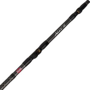 The PENN Ally II Boat Rod has the power and durability you need for offshore saltwater fishing. PENN uses a combination of Seaguide Stainless Steel guides with zirconium inserts and PacBay machined aluminum roller guides in key high-stress areas to extend the life of your line by reducing friction. The incredibly tough tubular E-glass rod blank with a solid glass tip withstands the strain of big. hard fighting fish. A non-corrosive aluminum Seaguide HBS reel seat keeps reels firmly secured during battle. Aluminum gimbals and PacBay aluminum butt sections provide considerable advantage in keeping the rod butt solidly planted during prolonged battles. Non-slip EVA grips withstand long days under the sun and saltwater spray while still providing a secure hold. The PENN Ally II Boat Rod provides the correct balance and application for your next offshore adventure.