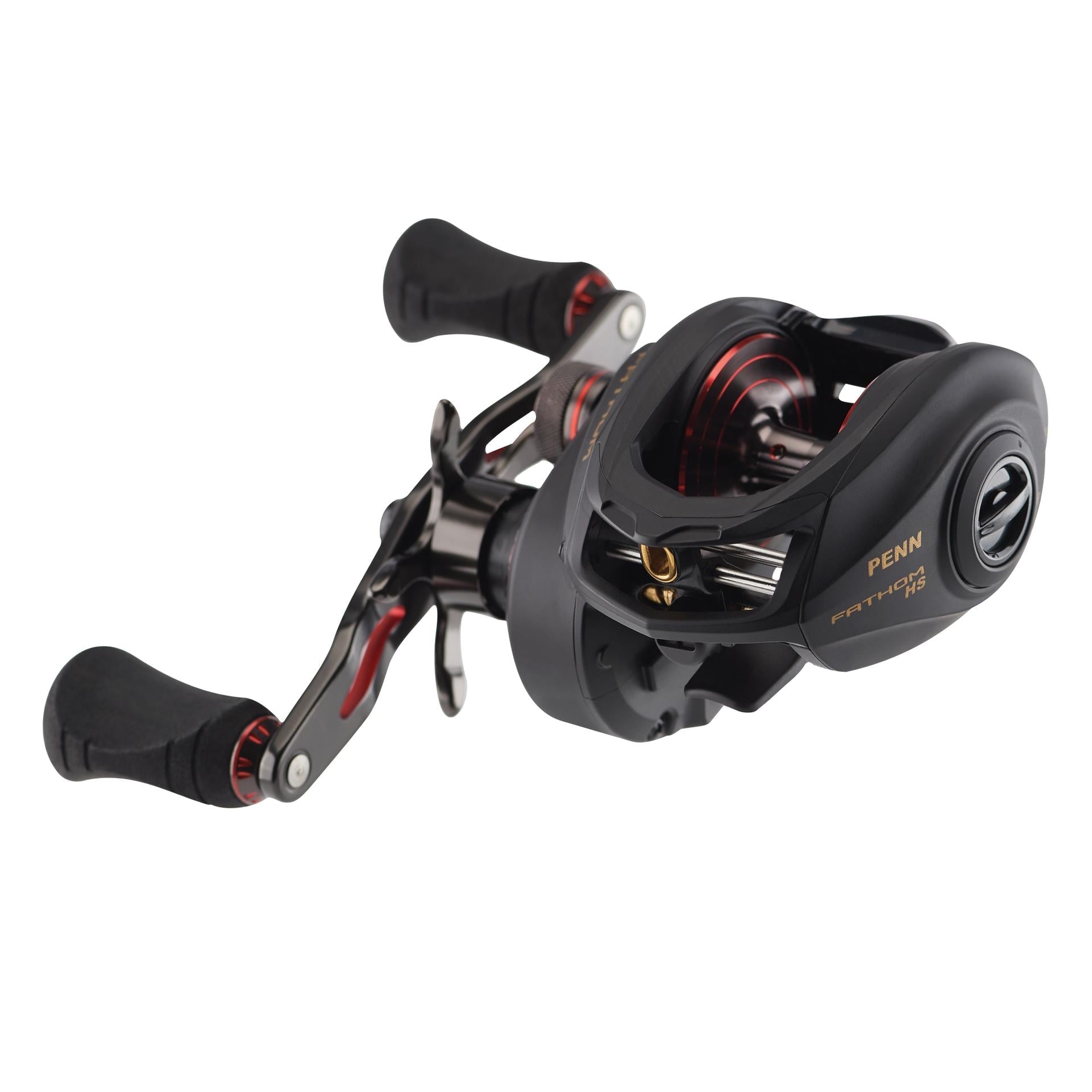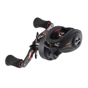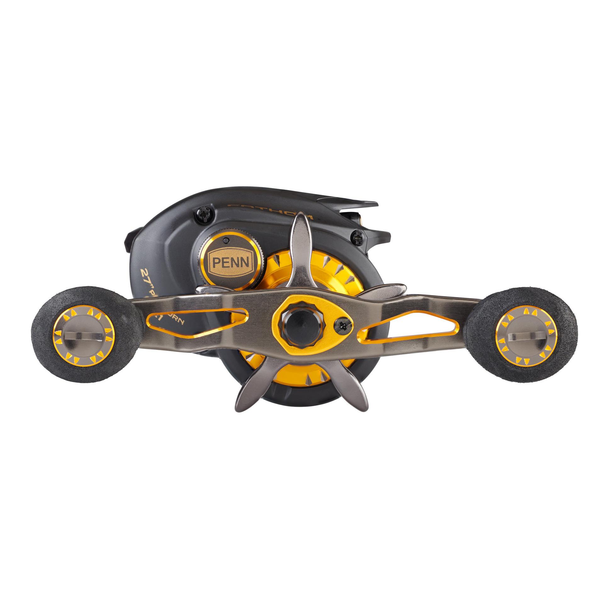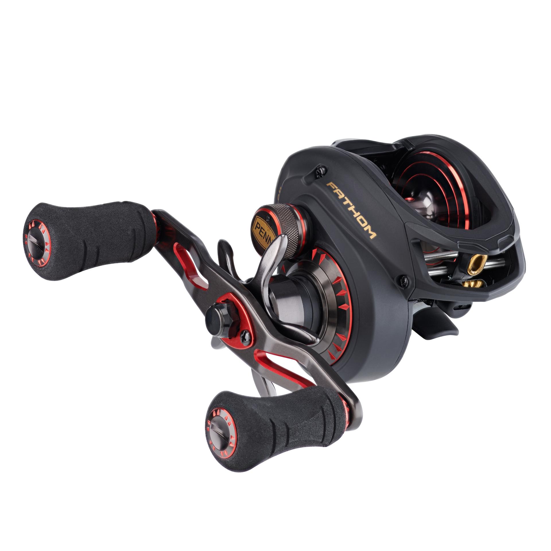The PENN Fathom low profile baitcast reels offer all the features you need to tackle the toughest saltwater fish. The Full Metal Body and Right Side plate. matched with a brass main gear and bearing supported pinion offer a drivetrain with unparalleled power. while the TiN Coated Level Wind System and Synchronized Drag and Level Wind system (*400 size only) give extra durability under high drags. Available in 200. 300 and 400 sizes with both standard and high speed gear ratios. Left hand models available in standard gear ratio only.