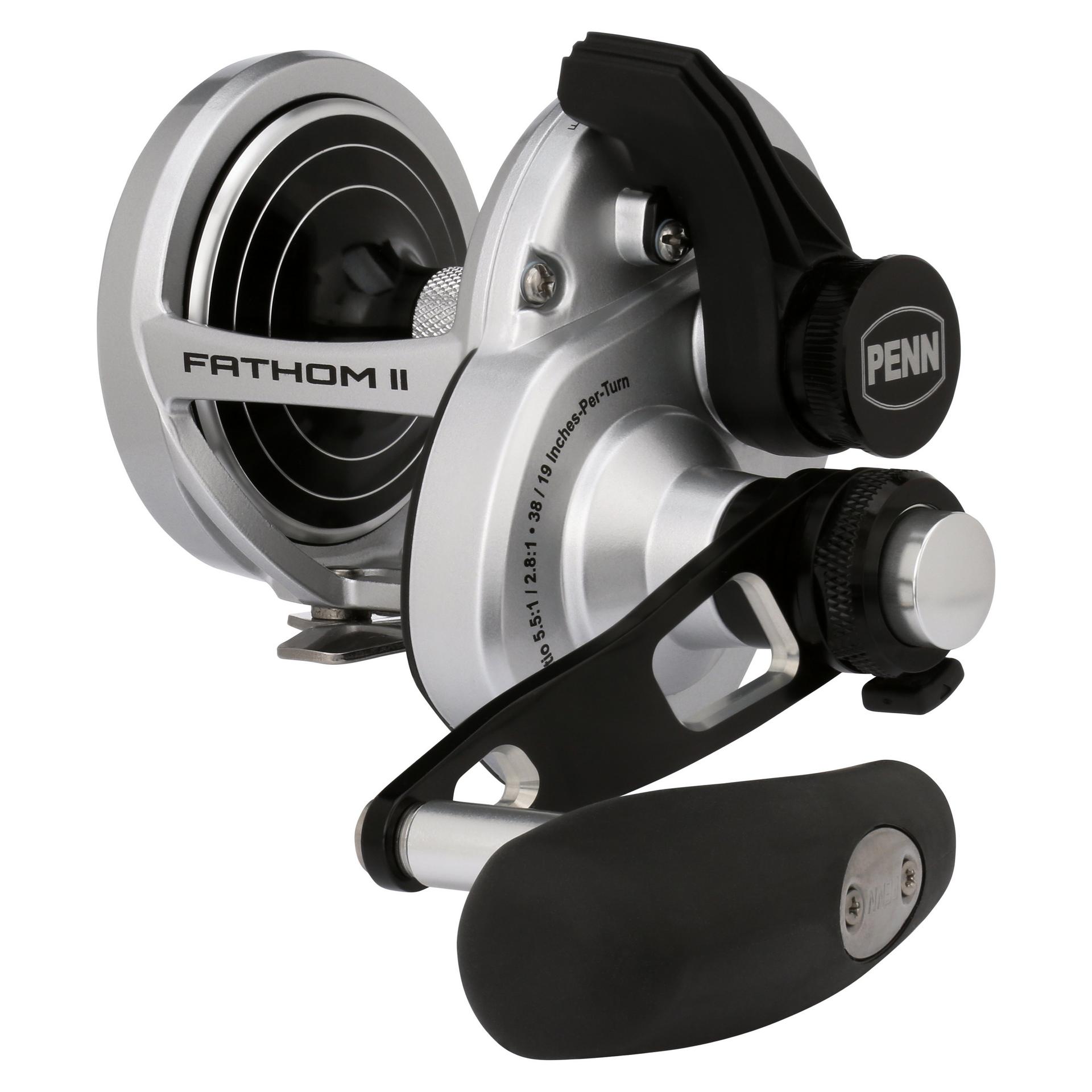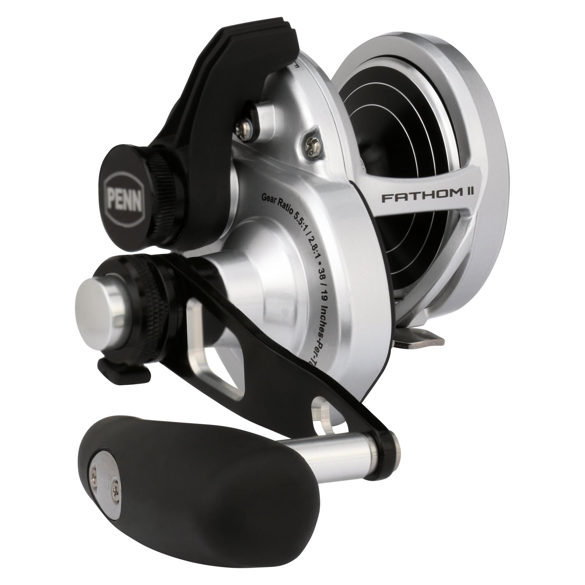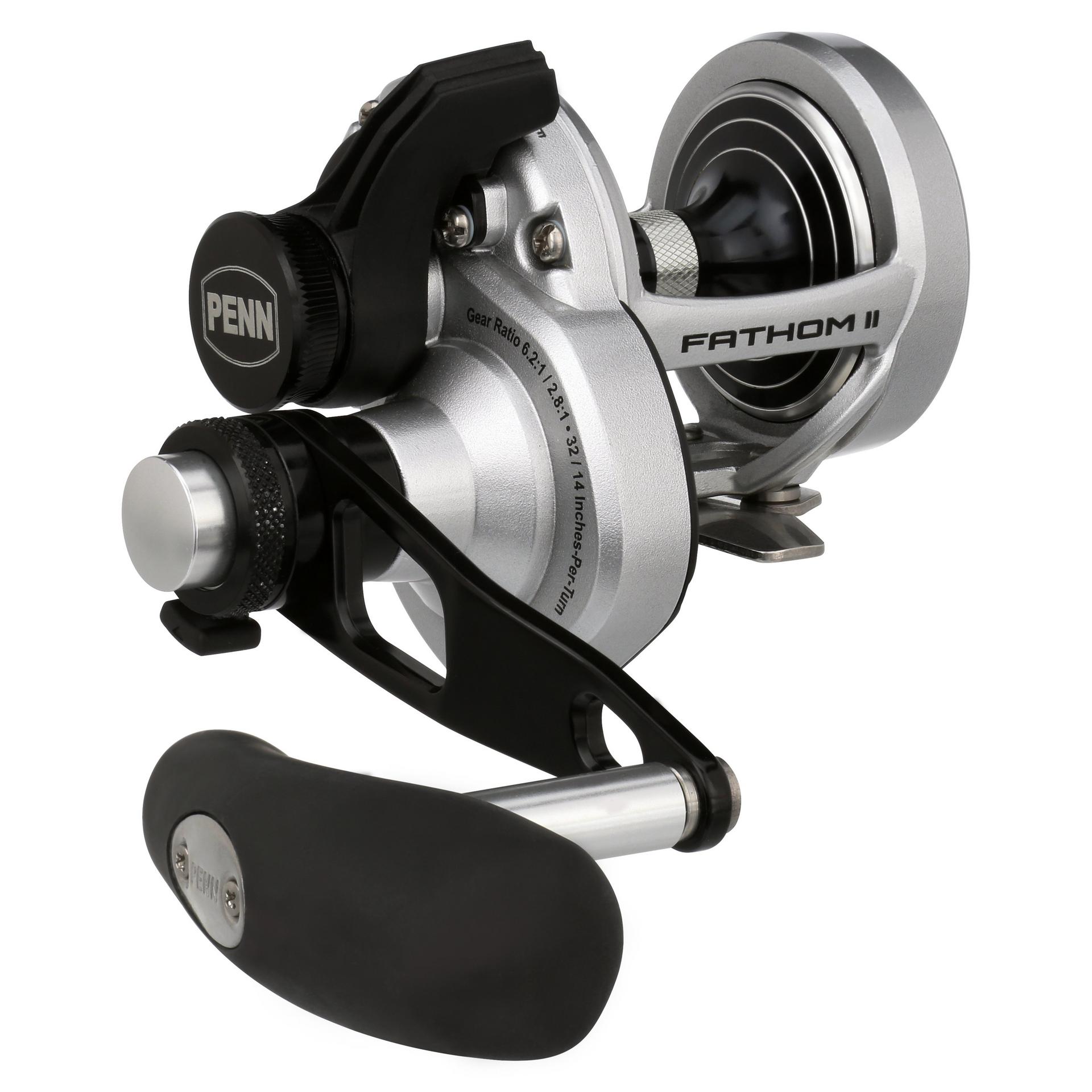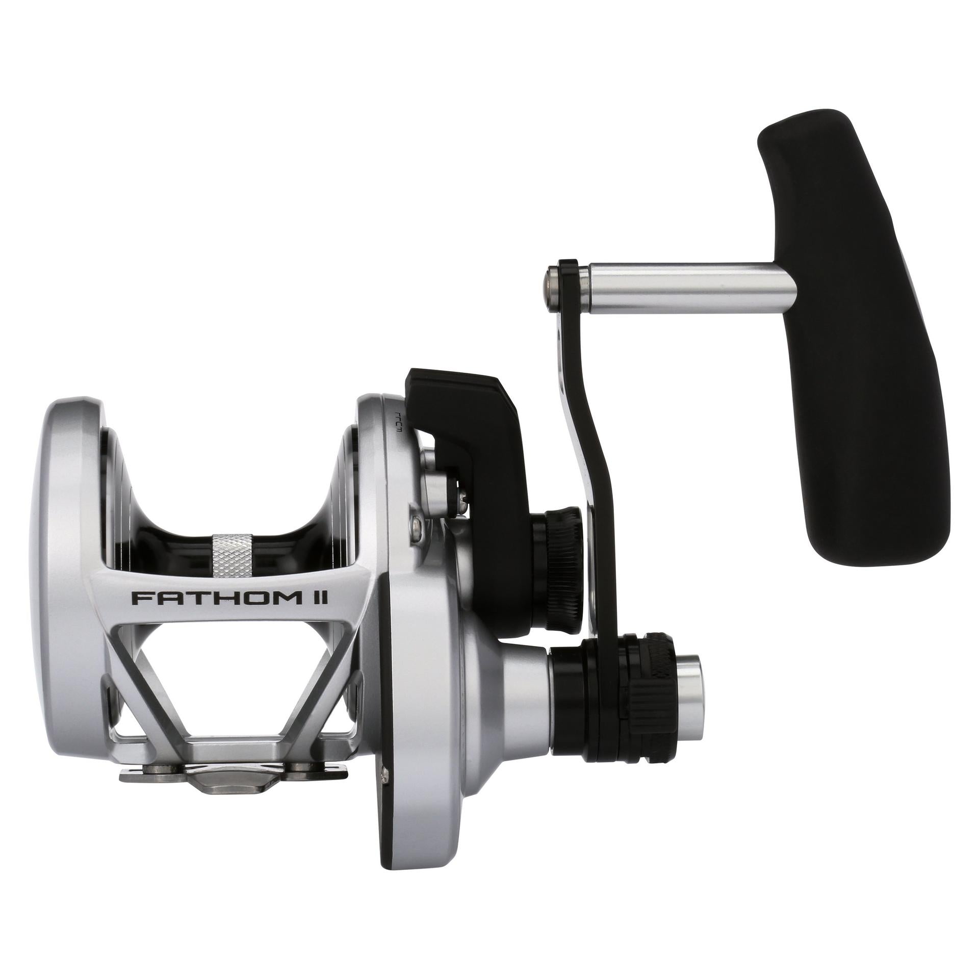 The all-new PENN Fathom II Lever Drag reels take a class-leading reel and raise the bar even more. New models. sizing. features. and optimized billfish models round out the assortment to give a model for every application. Integrating the palm side plate and frame allows the PENN Fathom II Lever Drag reels to be more compact in hand and increases strength. The Pull-to-Turn preset knobs allow the angler to truly set it. and forget it. At the PENN Fathom’s core is a stainless steel main and pinion gear and a forged and machined aluminum spool for maximum durability.