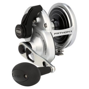The all-new PENN Fathom II Lever Drag reels take a class-leading reel andraise the bar even more. New models. sizing. features. and optimized billfish models round out the assortment to give a model for every pplication. Integrating the palm side plate and frame allows the PENN Fathom II Lever Drag reels to be more compact in hand and increases strength. The Pull-to-Turn preset knobs allow the angler to truly set it. and forget it. At the PENN Fathom core is a stainless steel main and pinion gear and a forged and machined aluminum spool for maximum durability.