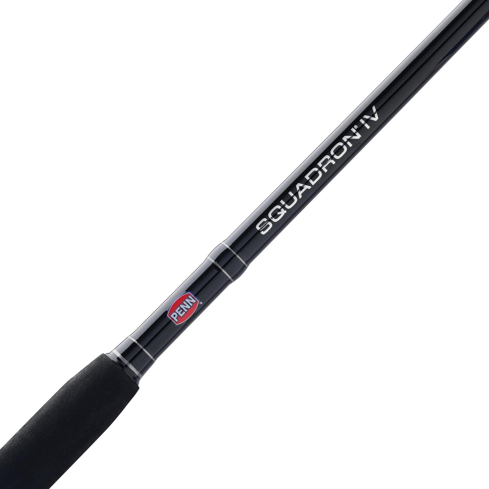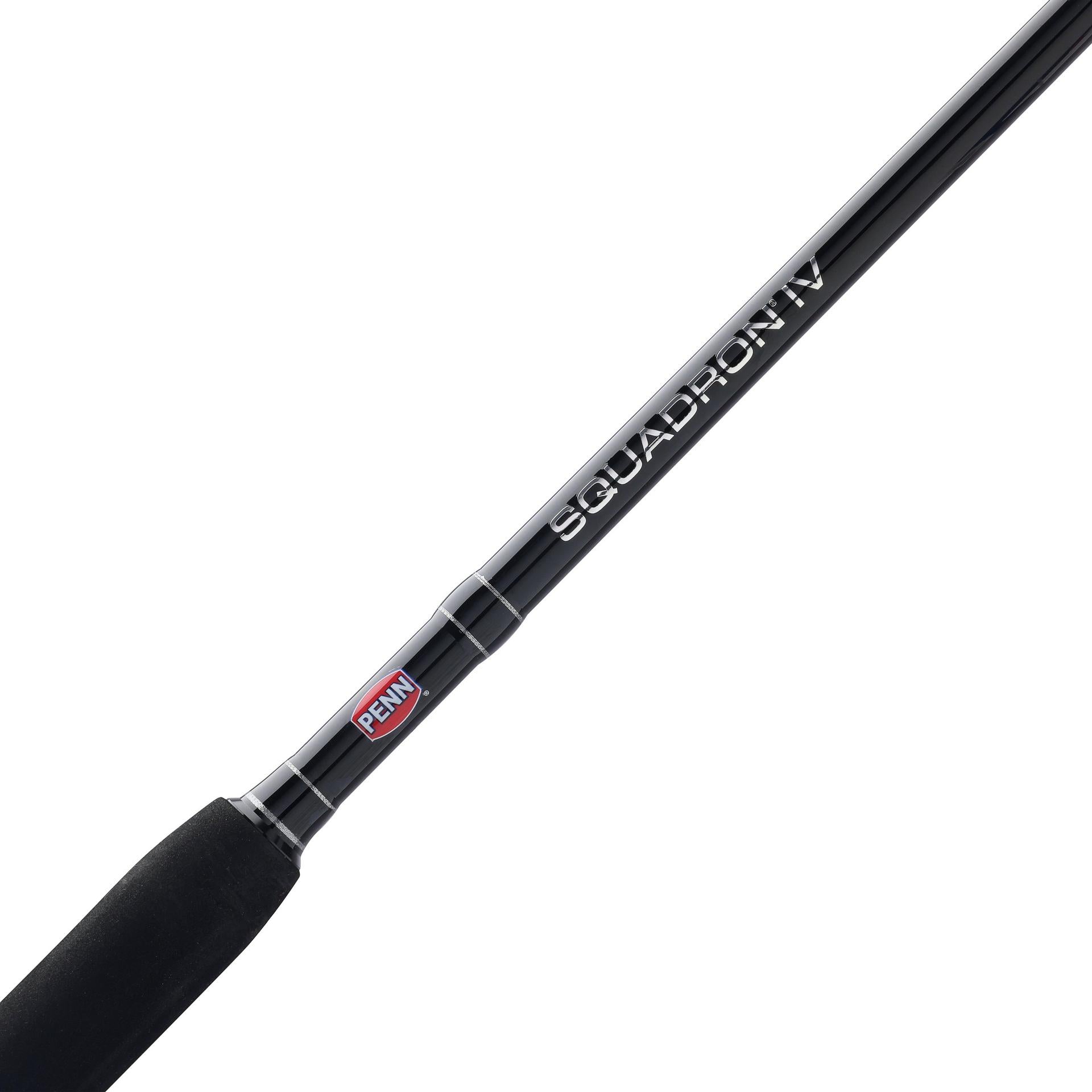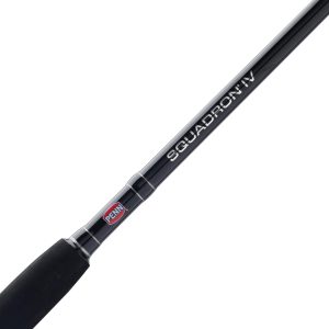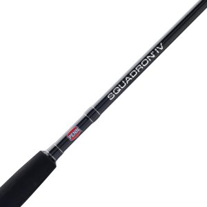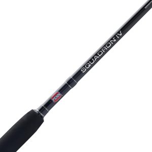 The Penn Squadron IV Boat rods are built for anglers who need durability and power for offshore and nearshore fishing. Constructed with fiberglass reinforced blanks. these rods offer exceptional strength and resilience. making them capable of handling tough fish and challenging conditions. The rods are outfitted with Penn Dura-Guides. which ensure smooth line flow while offering excellent durability and resistance to wear. A heavy-duty graphite reel seat provides a secure and sturdy mounting for reels. while rubber gimbals enhance comfort and provide a firm grip during intense battles with fish. Designed to withstand the demands of the toughest saltwater fishing. the Penn Squadron IV Boat rods offer a perfect balance of strength. reliability. and performance.
