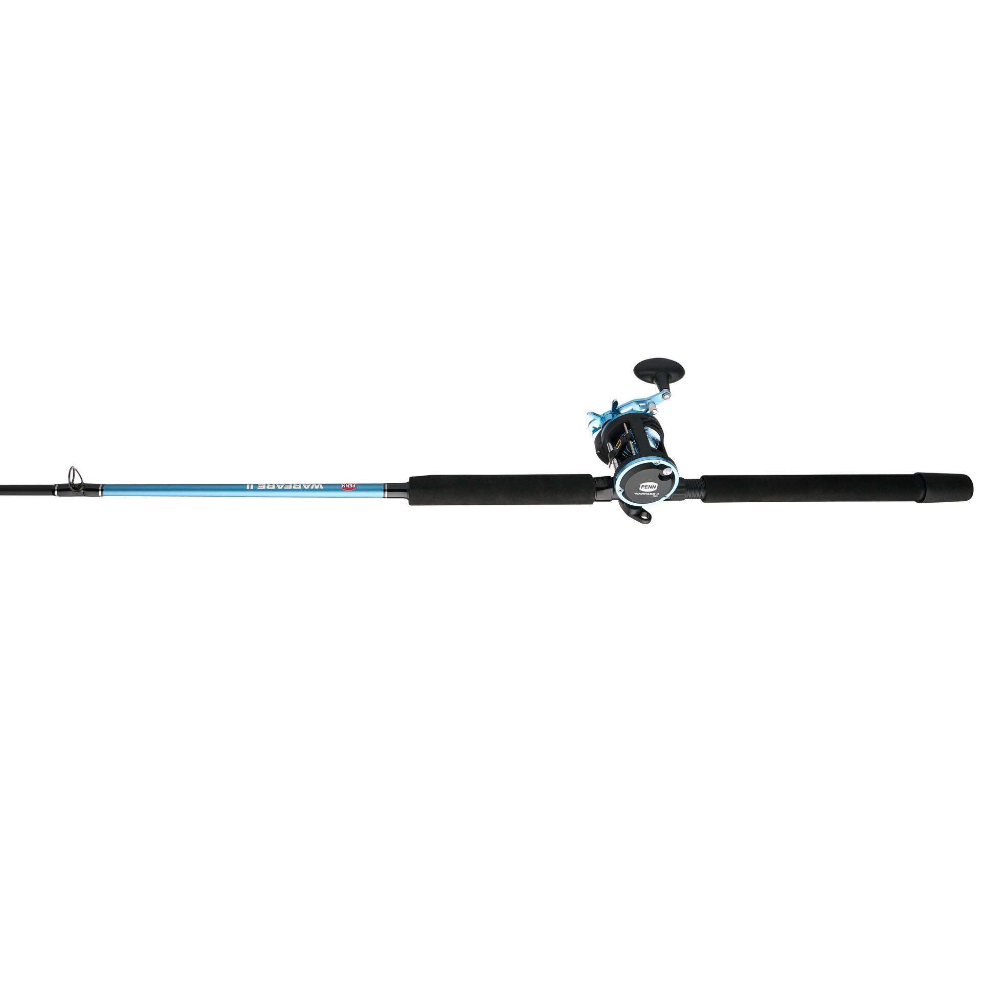 The PENN Warfare II Level Wind Combo offers an excellent balance of performance and value. making it a great choice for anglers of all skill levels. The combo includes a rod featuring a tubular glass blank. known for its strength and flexibility. combined with PENN Dura-Guides that ensure smooth line flow. The rod is also equipped with EVA grips. providing comfort and a secure hold. even during extended fishing sessions. The PENN Warfare II Level Wind Reel comes with an HT-100 carbon fiber drag system. which delivers smooth and reliable drag performance when battling big fish. The reel also features a durable aluminum spool. ensuring strength and a smooth retrieval.